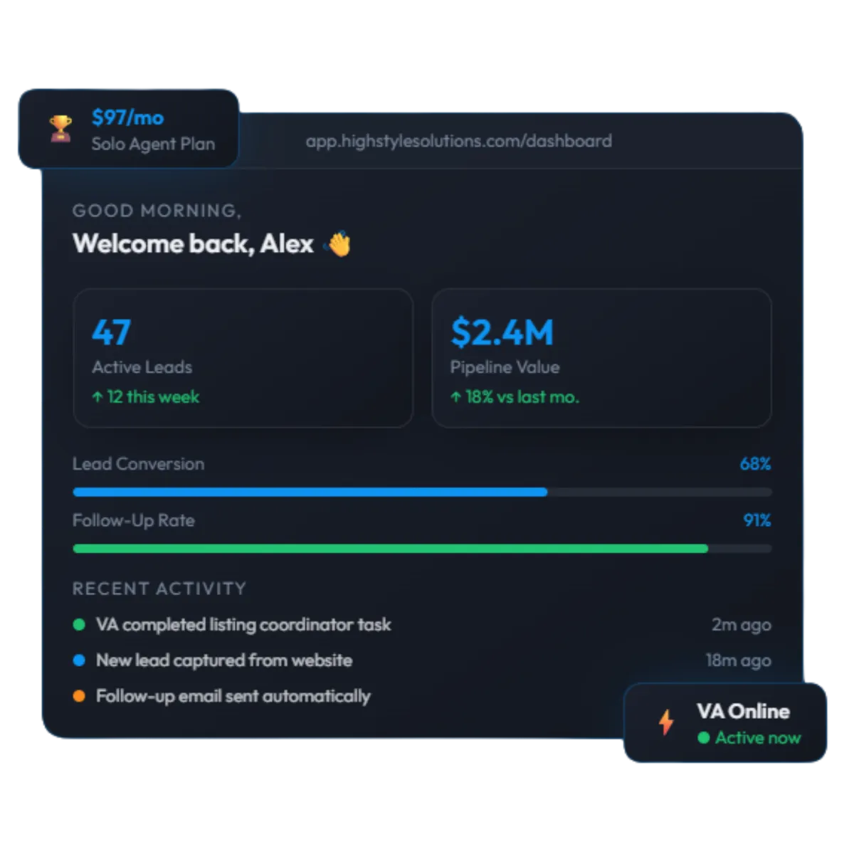 Trained real estate VAs handle admin, listing coordination, client follow-up, and calendar management — so you sell more and stress less.