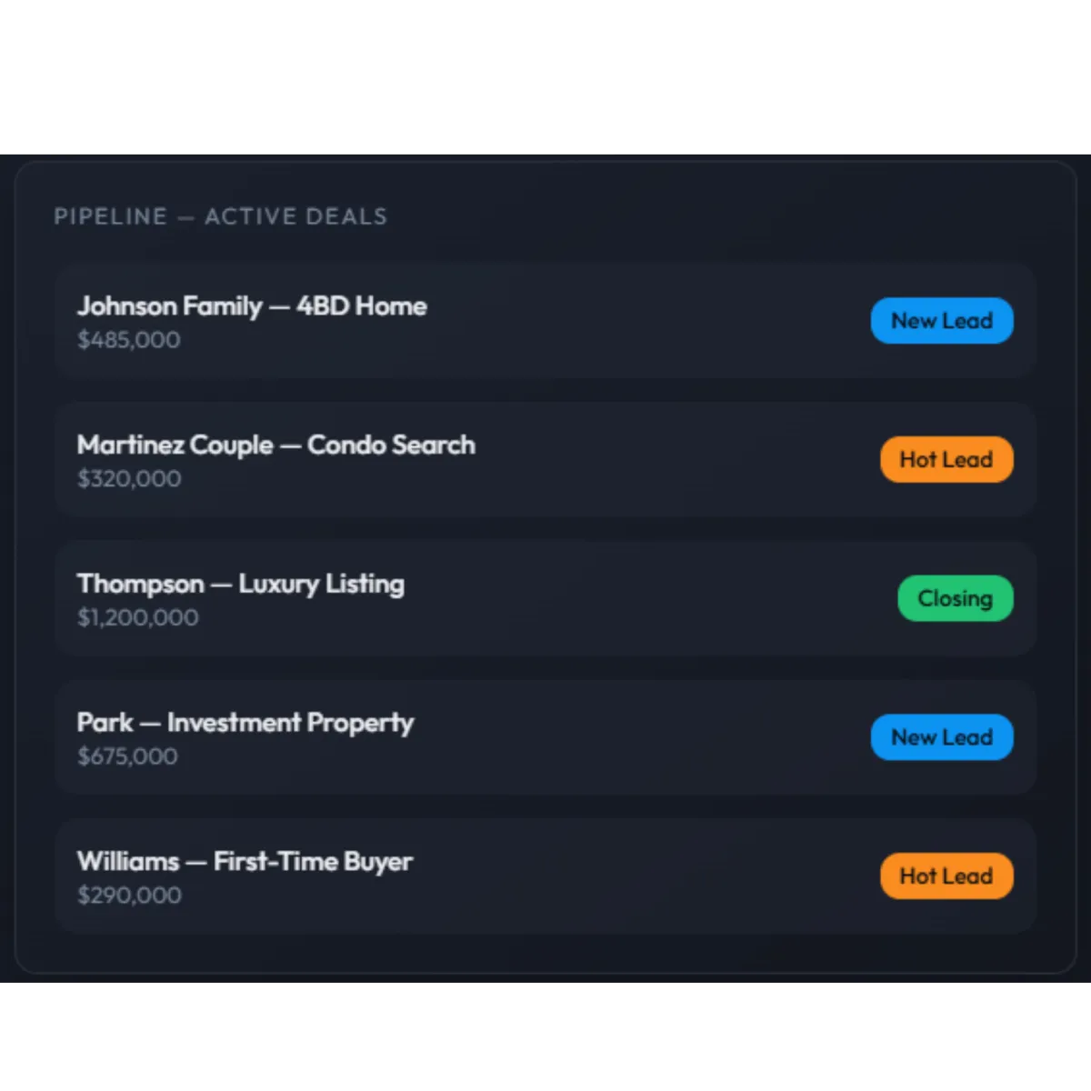 The industry has been charging agents ridiculous prices for CRM tools. We deliver a full-featured CRM — pipeline tracking, automations, team collaboration, lead scoring, and reporting — integrated directly into your plan. No add-ons. No gotchas.